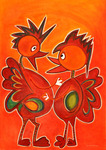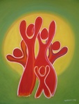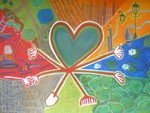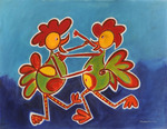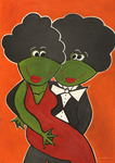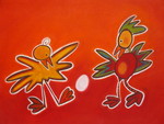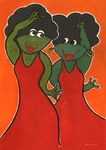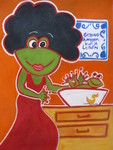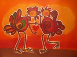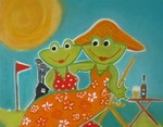 2009Het Wie zijn wij schilderij ; 'Zonnige kikkers' heb ik in opdracht gemaakt. Het is door een paar vriendinnen als verrassing cadeau gegeven.