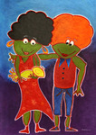 2012'Samen op stap ' (2) is onderdeel van een tweeluik en hangt op de derde etage van een appartementencomplex aan de Wimpel in Groningen.